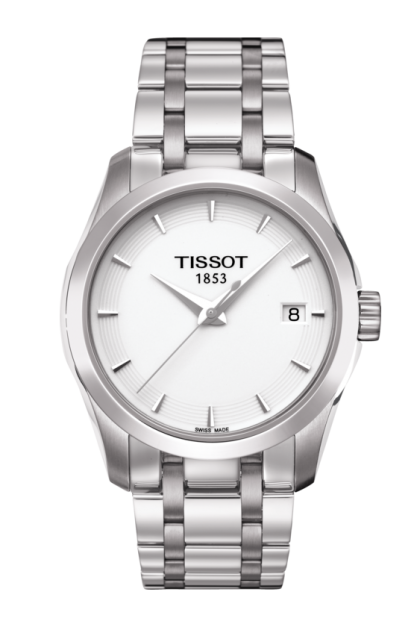 Dieses klassische Damenmodell aus der Tissot Couturier Quartz Kollektion ist mit Swiss Made Quartzwerk mit Batterie-Endanzeige und einem 316L - Edelstahlgehäuse ausgestattet.