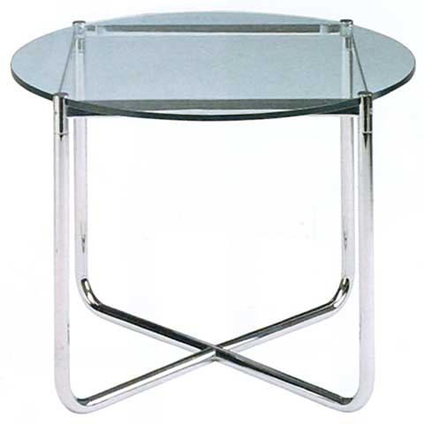 Glass table E 1027, designer: Eileen Gray, height: 62 - 100 cm (adjustable), diameter: 51 cm, tubular steel frame (chrome), table top: crystal glass
