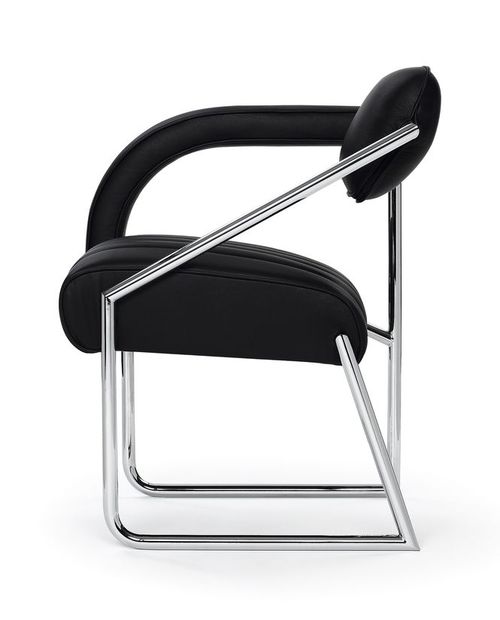 Sessel mit aufwendigen Originalnähten. Die Rundungen werden aus einzelnen Segmenten realisiert und mit hochwertigem Leder bespannt. Die Posterung auf dem Stahl…